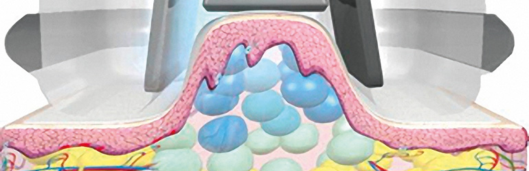 Bild Das Behandlungsgerät erzeugt ein Vakuum zwischen den Anwendungsflächen und zieht das Gewebe durch. |