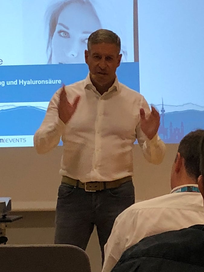 Dr. med. Peter Mikowsky hält Vortrag beim Kundensymposium der Firma Aesthetico.