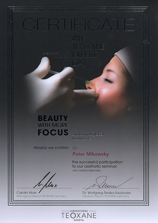 Herr Dr. Peter Mikowsky hat erfolgreich am 4. TEOXANE EXPERT DAY in Frankfurt teilgenommen.